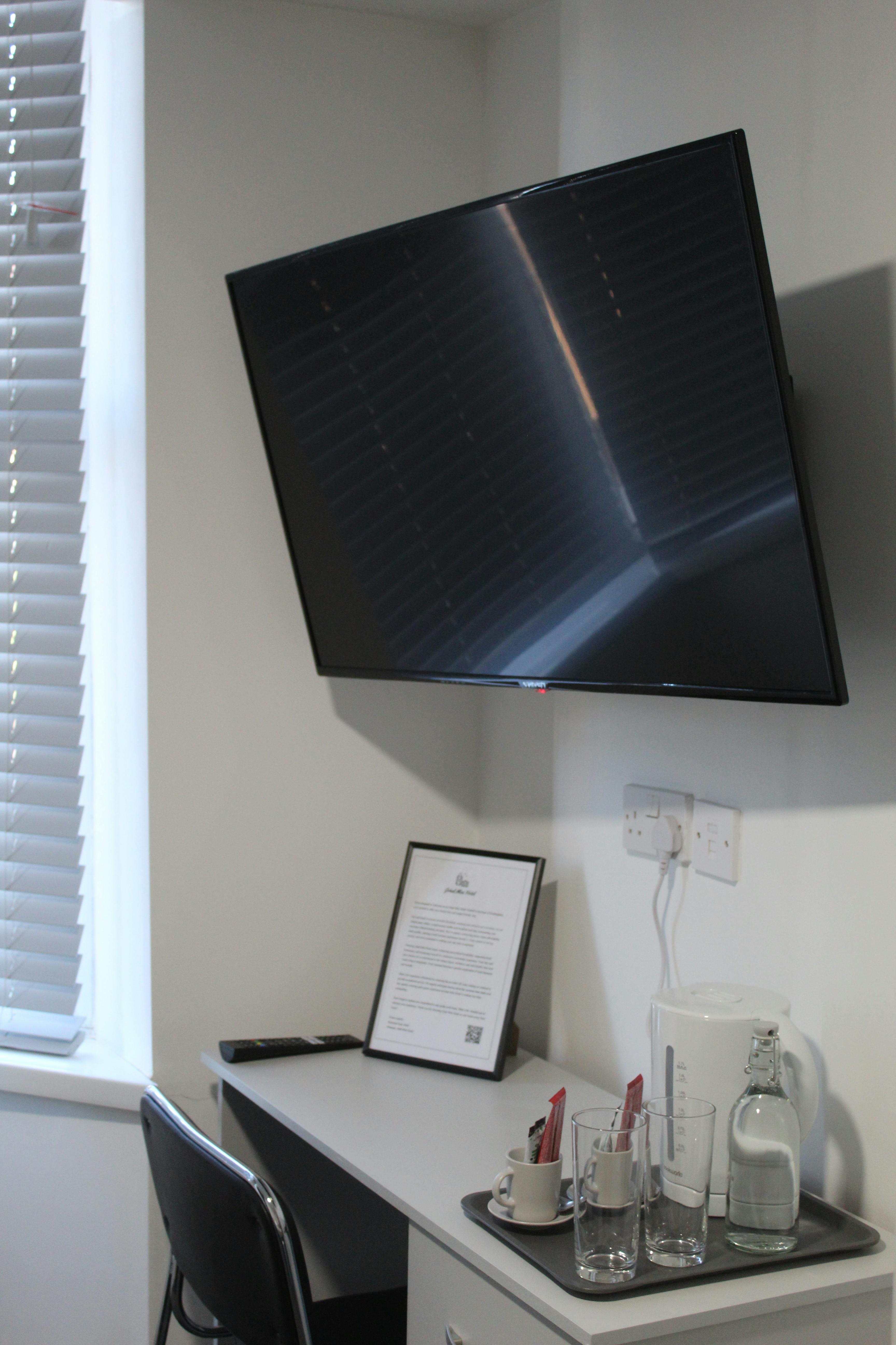Entertainment awaits you with a sleek flatscreen, smart TV boasting compatibility with popular streaming services like Netflix and Amazon Prime, ensuring that you can unwind with your favorite shows and movies. Additionally, a selection of free viewing channels is available for your entertainment pleasure.